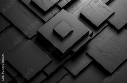 Abstract Dark Gray and Black Textured Cubes 3D Rendering