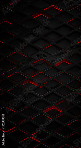 Abstract Dark Grid Pattern with Red Neon Lights Modern Geometric Background Texture