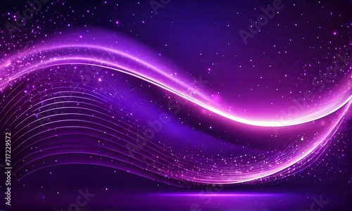 Abstract dark purple background with glowing particles, waves, and stars. Galaxy, futuristic world. Designed for banners, wallpaper, template, background, postcard
