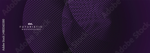 Abstract Dark Purple-Pink Gradient Circles Flowing Dot Waving Particle Geometric Technology Background. Digital Futuristic Black-Violet Dotted Wave. Concept For Science, Music Cover, Website, Header