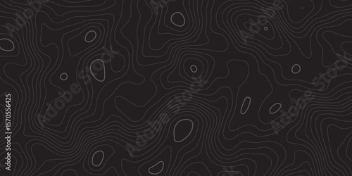 "Abstract dark topographic background featuring smooth contour lines on a black surface. Ideal for maps, technology themes, modern designs, digital interfaces, and futuristic creative projects"