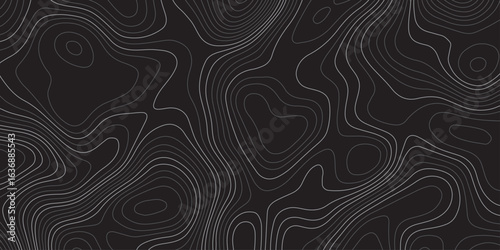 Abstract dark topographic map background with smooth contour lines, modern minimalistic design, seamless pattern, perfect for wallpapers, presentations, and geolocation-themed projects.