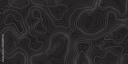 Abstract dark topographic map background with smooth contour lines, modern minimalistic design, seamless pattern, perfect for wallpapers, presentations, and geolocation-themed projects.
