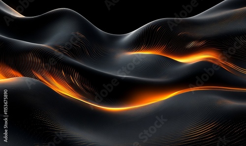 Abstract dark waves with glowing orange lines. (1)