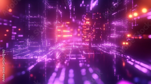 Abstract data city with vibrant neon lights, immersive digital architecture vision