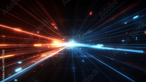 Abstract data speed lines on dark background symbolizing optical cables and high internet speed with flowing lines of light