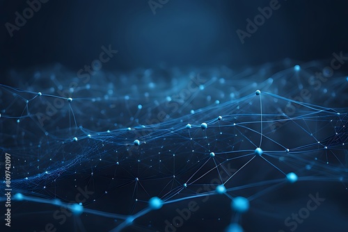 Abstract data technology background with a network grid and particles connected. Sci-fi digital technology with line
