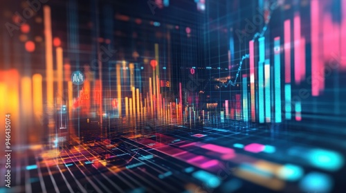 Abstract Data Visualization with Neon Bar Graphs and Grid Pattern