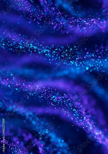 Abstract Deep Blue and Purple Swirling Texture with Glittering Particles.
