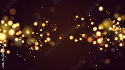 Abstract defocused circular golden bokeh sparkle glitter lights background. Magic christmas background. Elegant, shiny, metallic gold background. EPS 10