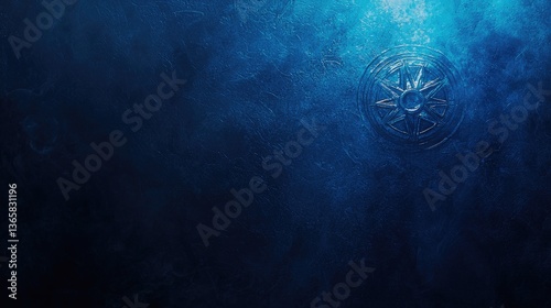 Abstract design, engraved sun symbol on dark blue stone background, decorative element, backdrop use