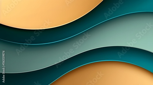 Abstract design featuring flowing shapes in gold, teal, and green hues.