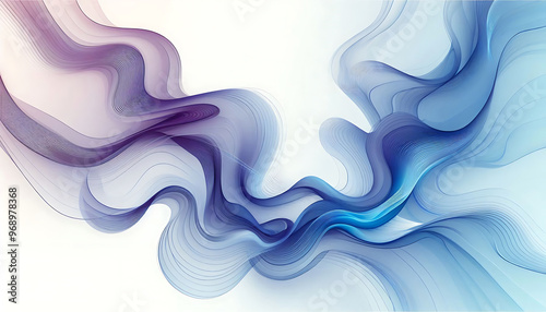 Abstract design featuring fluid wavy lines in shades of blue and purple against a soft white background and the shapes appear to flow seamlessly