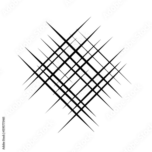Abstract design featuring intersecting black lines forming a grid like pattern on white background art