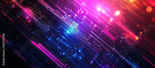 Abstract Digital Art: Neon Lines and Glowing Pixels