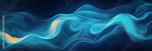 Abstract digital art of flowing blue and turquoise waves with smooth orange highlights evoking a calm and dynamic energy