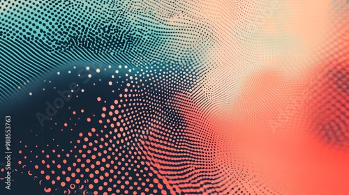 Abstract digital art with a wavy, rippling effect in coral and blue colors.
