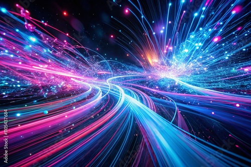 Abstract Digital Art with Vibrant Blue and Pink Light Trails and Particles Captured in Aerial Photography for a Stunning Visual Experience