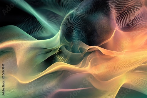 Abstract Digital Art with Wave Pattern in Green and Orange Gradient Background
