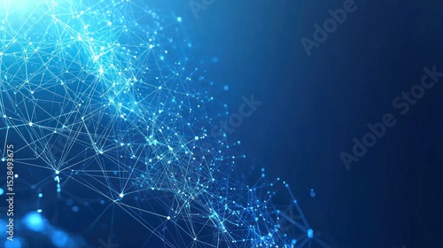 Abstract digital artwork featuring a flowing network of interconnected nodes and lines, rendered in shades of blue against a dark background, creating a sense of depth and movement