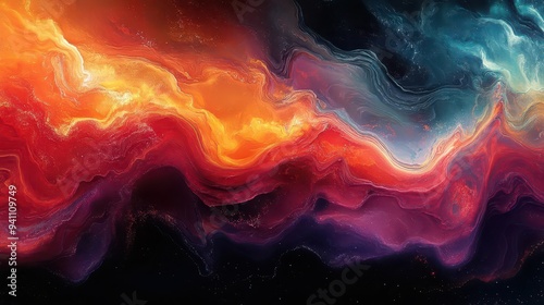 abstract digital artwork featuring swirling liquid textures in vibrant colors dynamic composition evokes movement and fluidity