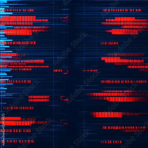 Abstract Digital Background Displays Red Data Blocks and Blue Grid Lines Seamlessly