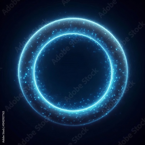 Abstract digital background featuring swirling blue circles and glowing patterns creating a futuristic vortex effect with a dark space