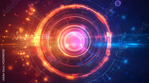 Abstract digital background featuring vibrant circular patterns and glowing lights in a futuristic design