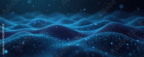 Abstract digital background. Futuristic digital landscape, waves of data, floating particles. Ideal for science, tech projects, depicting network abilities, technological processes, digital storages.