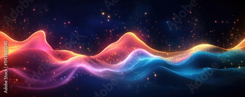 Abstract Digital Background Futuristic Neon Waves Vibrant Colors High Contrast Light Energetic Movement