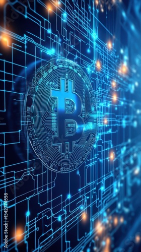 Abstract Digital Background with Bitcoin and Circuit Patterns