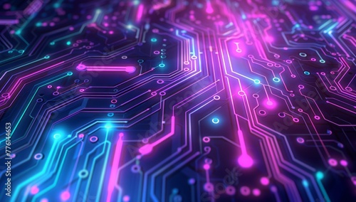 Abstract digital background with circuit board pattern in the style of neon blue and purple colors against a dark background Generative AI