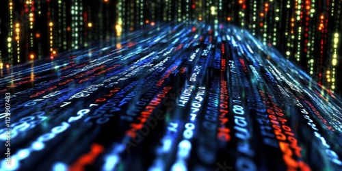 Abstract Digital Background with Flowing Data in Binary Code Representation, Ideal for Technology and Data-Driven Projects and Designs