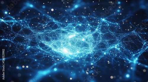 Abstract digital background with glowing connections and data points forming an intricate network on a dark blue backdrop