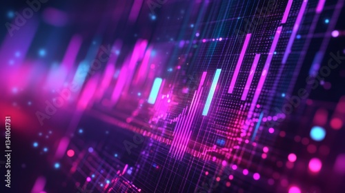 Abstract Digital Background with Glowing Data Visualization, Equalizer, and Music Bar Graph in Purple and Pink