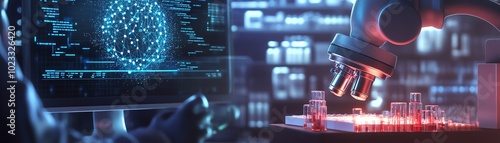 Abstract digital background with glowing lines and shapes.