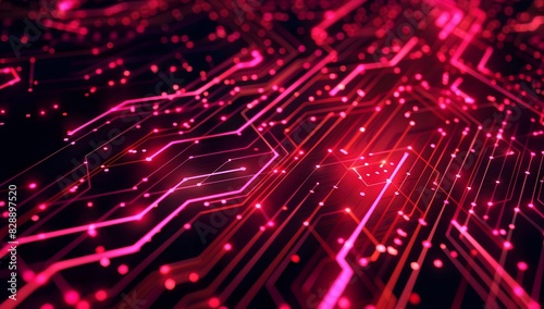 Abstract digital background with glowing red lines and circuit patterns on black, representing the flow of data in technology network system