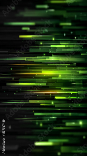 Abstract digital background with horizontal green lines and block patterns on a dark backdrop. Tech-themed design represents data flow, networking, and futuristic communication. Vertical 9:16 layout.