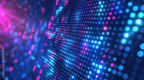 Abstract digital background with vibrant dots in blue and pink hues.
