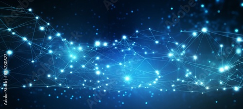 Abstract digital blue background with a glowing global network and internet connections on a dark blue backdrop, a technology concept.