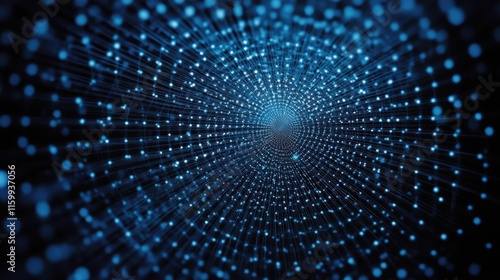 Abstract Digital Blue Background with Dots and Light Particles Creating a Sense of Depth and Movement in a Cosmic Style for Creative Projects or Presentations