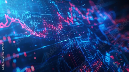 Abstract digital chart background, stock business graph, statistics and diagram about data exchange in finance, trend and trade in economy