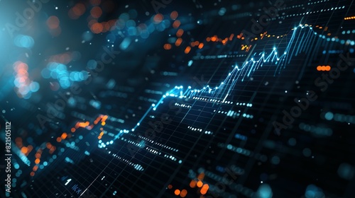 Abstract digital chart background with stock business graphs, statistics, and diagrams depicting data exchange in finance, economic trends, and trade.