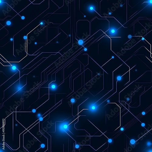 Abstract digital circuit background with glowing blue lights on dark color, perfect for technology and innovation themes.