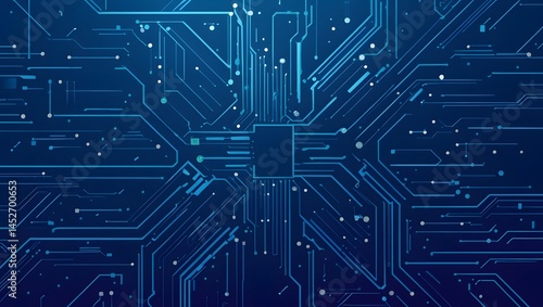 Abstract Digital Circuit Board Technology Background Blue Lines and Nodes