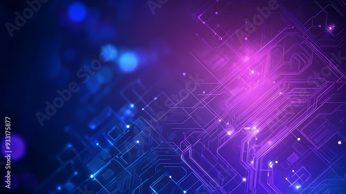 Abstract Digital Circuit Board with Purple and Blue Glowing Lines