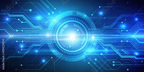 Abstract Digital Circuitry Design with Glowing Blue Lines and a Central Hub