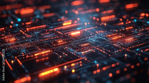 Abstract Digital Circuitry: Glowing Network of Nodes and Connections