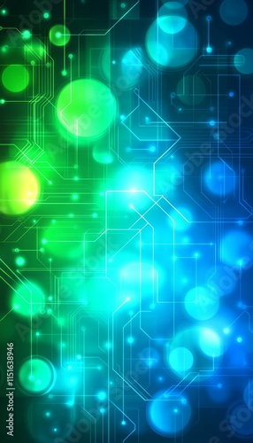 Abstract Digital Circuitry, Vibrant Blue and Green Information Technology and Computing Background.