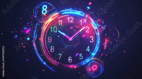 Abstract digital clock, vibrant colors, time concept, dynamic display